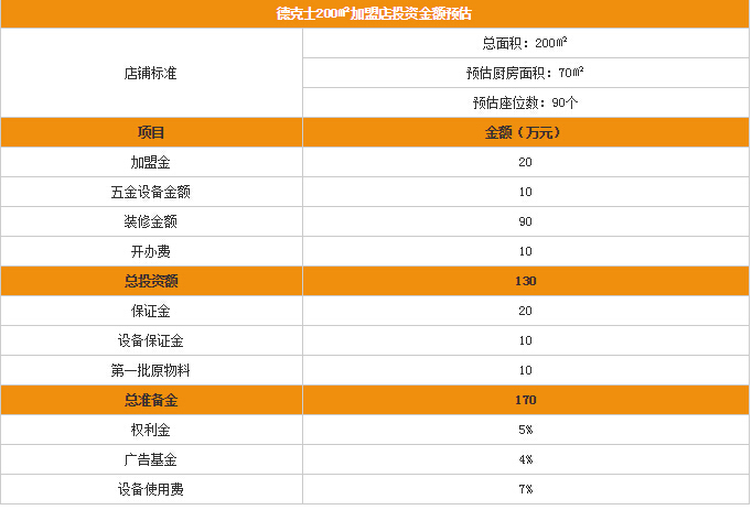 德克士加盟费多少?利润怎样?德克士目前,已经拥有上千家门店,德克士在发展过程中根据中国国情的经验,找到了适合自己的发展模式,所以市场前景尚好,德克士加盟项目投资比较小,风险比较低,而回本又比较快。不管是大学生、白领,还是农民,都可以选择。经过几年的磨合和培育,德克士已经拥有了一批忠实的加盟者。而这些加盟商单店的投资回报率很高,普遍都能回收一个店铺。那么,德克士加盟费用是多少呢?德克士加盟费20万。